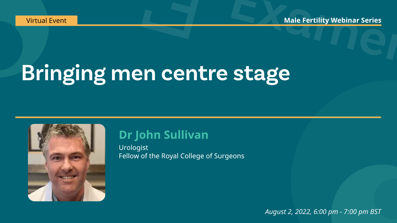For too long men have been relegated to the side-lines of fertility treatment. Dr John Sullivan, Senior Registrar in Urology,